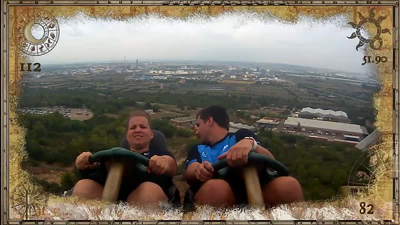 Dit is Shambhala in het Spaanse Portaventura, een heftige achtbaan waarin het niet raar is dat je je telefoon verliest. Wat echter wél bizar is is dat de man een paar stoelen achter je de telefoon weer op weet te vangen.