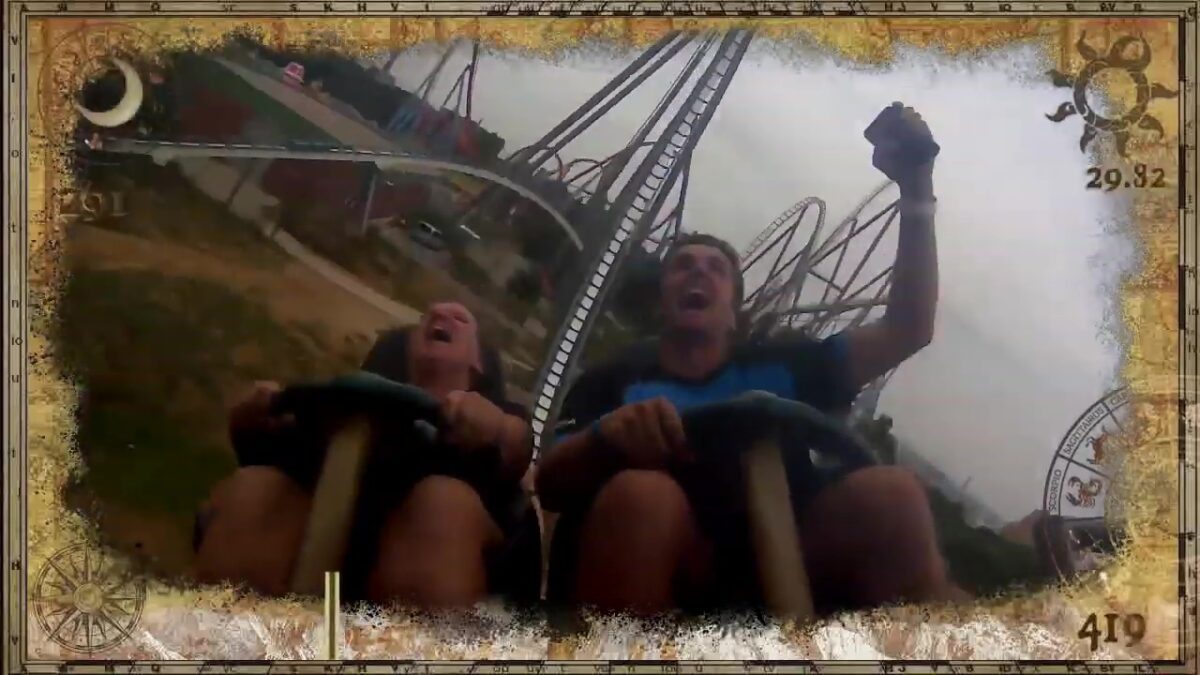Man met bizarre reflexen vangt telefoon van andere passagier in achtbaan