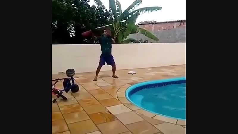 Zwembad-terrorist komt erachter dat zijn geweer flink wat terugslag heeft Fun
