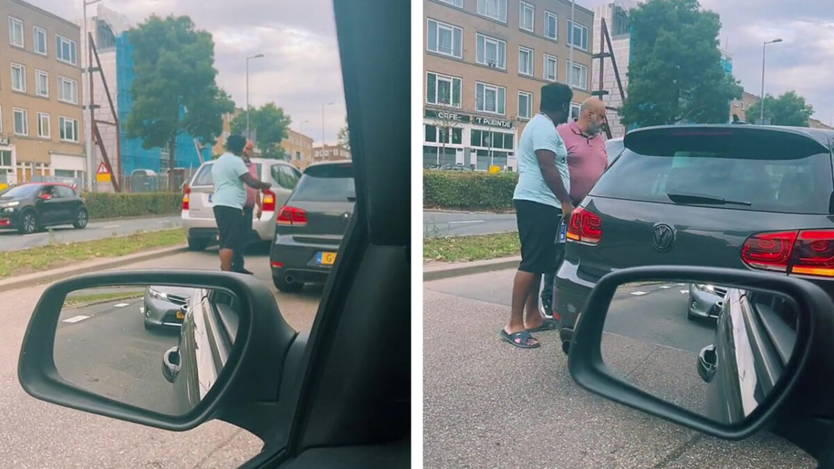 In Rotterdam wordt er midden op straat druk gediscussieerd wie nou wie heeft geramd, waarbij het blijkbaar uitermate belangrijk is om te melden dat hij een hele duren auto heeft.