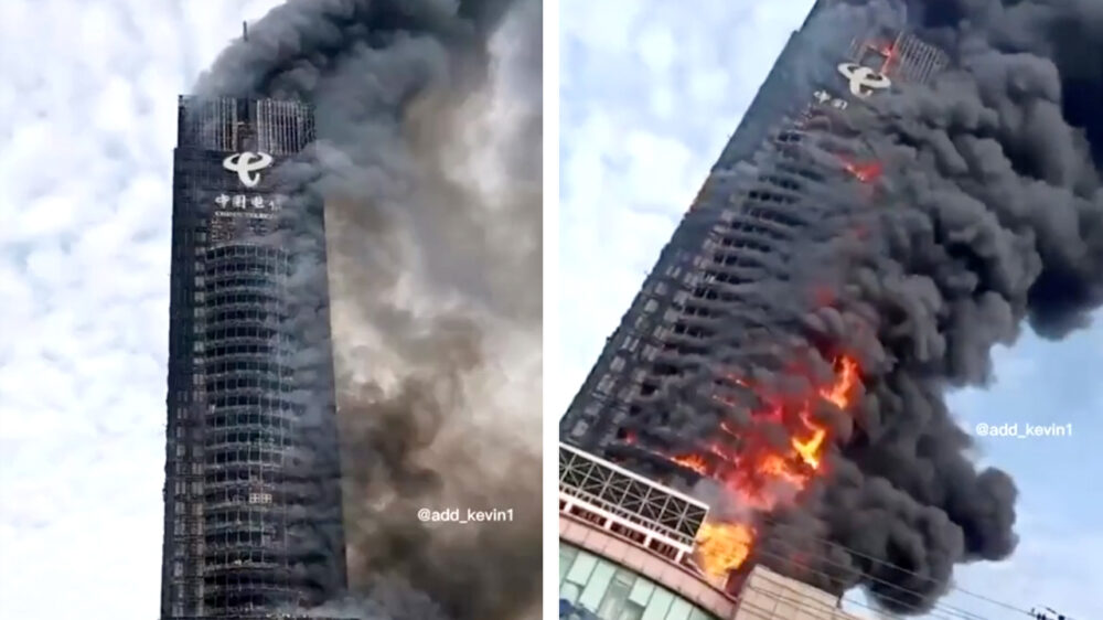 Naar verluidt is de verf aan de buitenkant van deze wolkenkrabber in de Chinese stad Changsha gaan branden, waarna zo ongeveer het hele gebouw in lichterlaaie staat. Het telecombedrijf zegt dat iedereen veilig is en dat is niemand gewond is geraakt. Laten we het hopen..