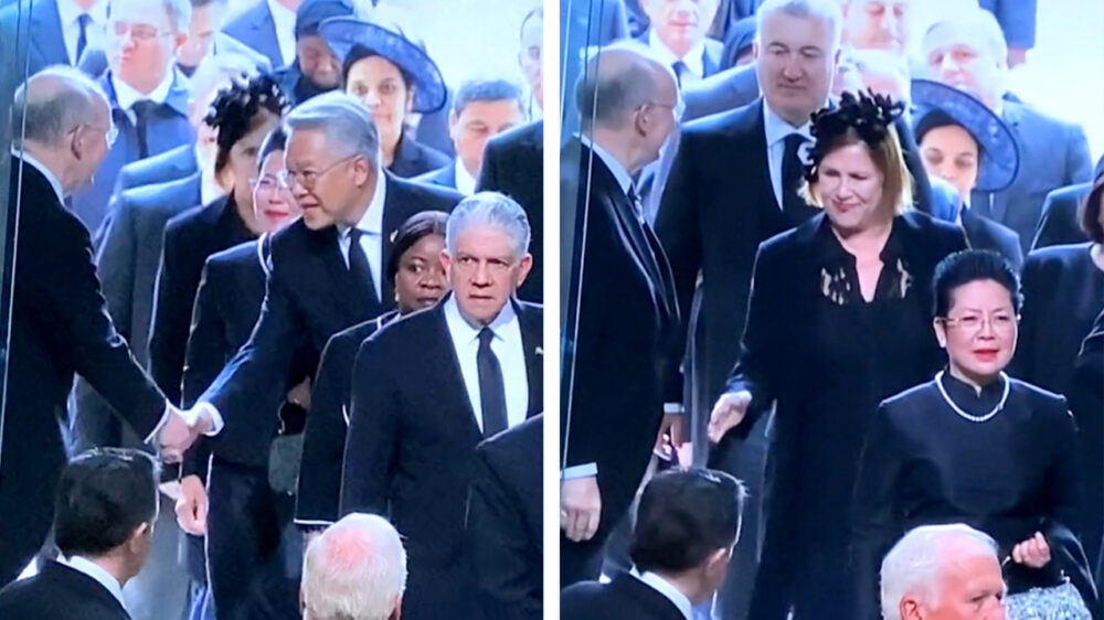 Dus je was blijkbaar wel belangrijk genoeg om uitgenodigd te worden voor waarschijnlijk de grootste en meest bekeken begrafenis everooit, maar het welkomstcomité maakt op 'subtiele' wijze duidelijk dat je eigenlijk gewoon bij het gepeupel hoort.