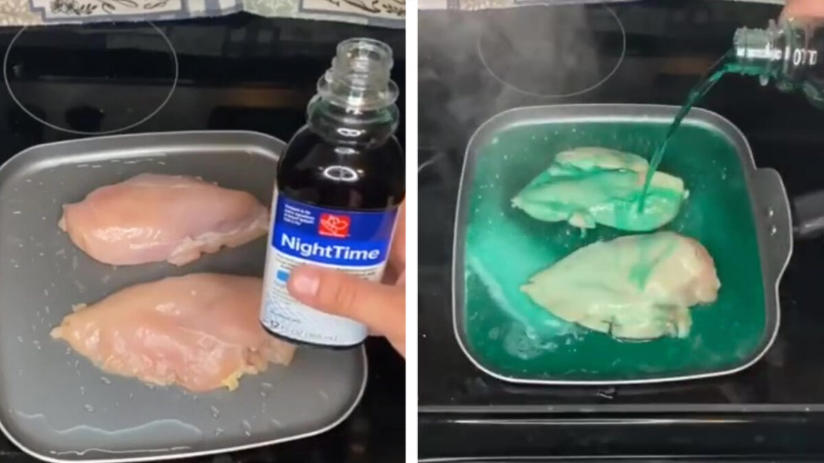 Amerika, het land van de onbegrensde mogelijkheden én het land waar de FDA (Food and Drug Administration) het nodig acht zijn landgenoten te waarschuwen om vooral je kip niet in NyQuil (een hoestsiroop) te bakken. Nee, dit verzinnen we niet. Er ging namelijk een jaar geleden een video rond op TikTok, waarin iemand zijn kip in de blauwe drank klaarmaakte, en de filetjes omdraaide met een stijltang.