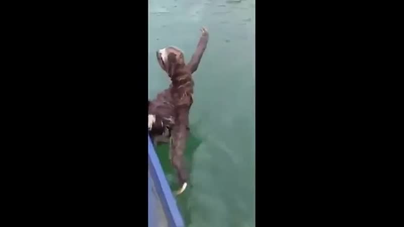 Blije luiaard maakt de boottocht van zijn leven Dieren