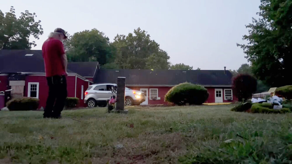 Man betrapt de rancuneuze ex die elke dag over het graf van zijn moeder staat te wateren