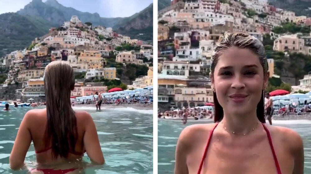 De 26-jarige fashionblogger en influencer (barf) is in Positano, een gemeente aan de Amalfikust in de Italiaanse provincie Salerno, heerlijk aan het genieten van een dagje aan het strand. Wij zijn onder de indruk. Van het uitzicht natuurlijk hè.