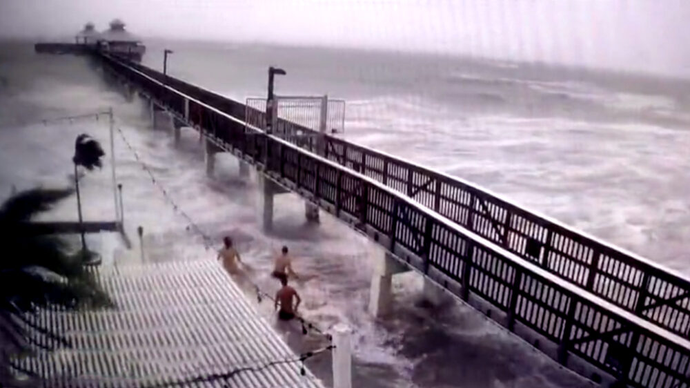 Ondanks orkaan Ian genieten deze 3 waaghalzen van een dagje strand in Fort Myers