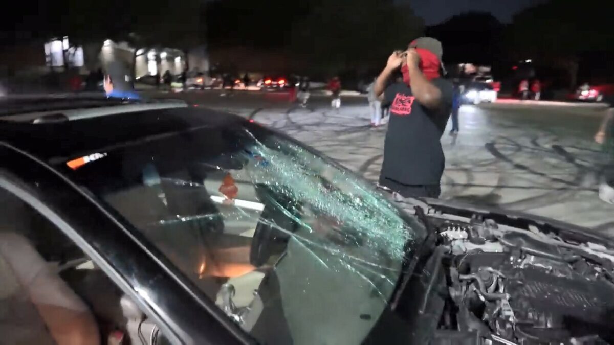 Bij een car meeting in Texas is een toeschouwer iets te druk bezig om een drifter met zijn telefoon vast te leggen. Eindresultaat; een kapotte voorruit en gesloopt ego.