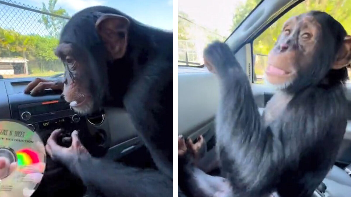 Opgewonden aapje weet precies wat lekkere muziek is