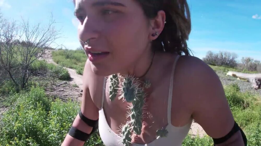 Prikkelbare dame fietst zo een bosje cactussen in Fails