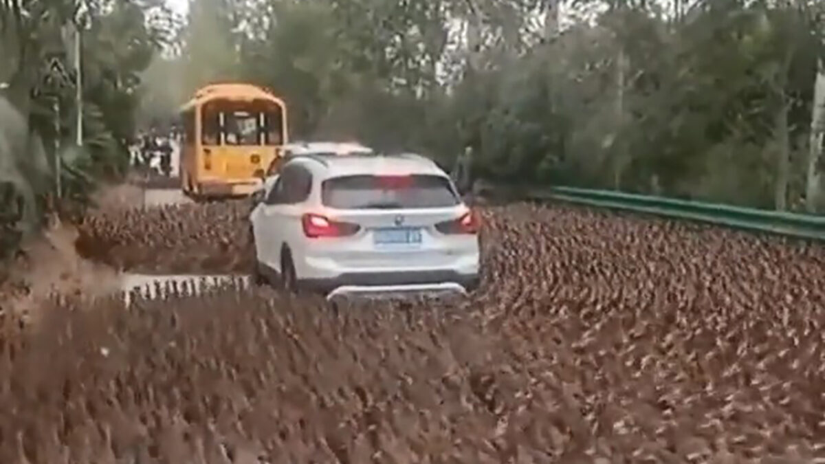 Eendenleger valt massaal BMW-rijder aan