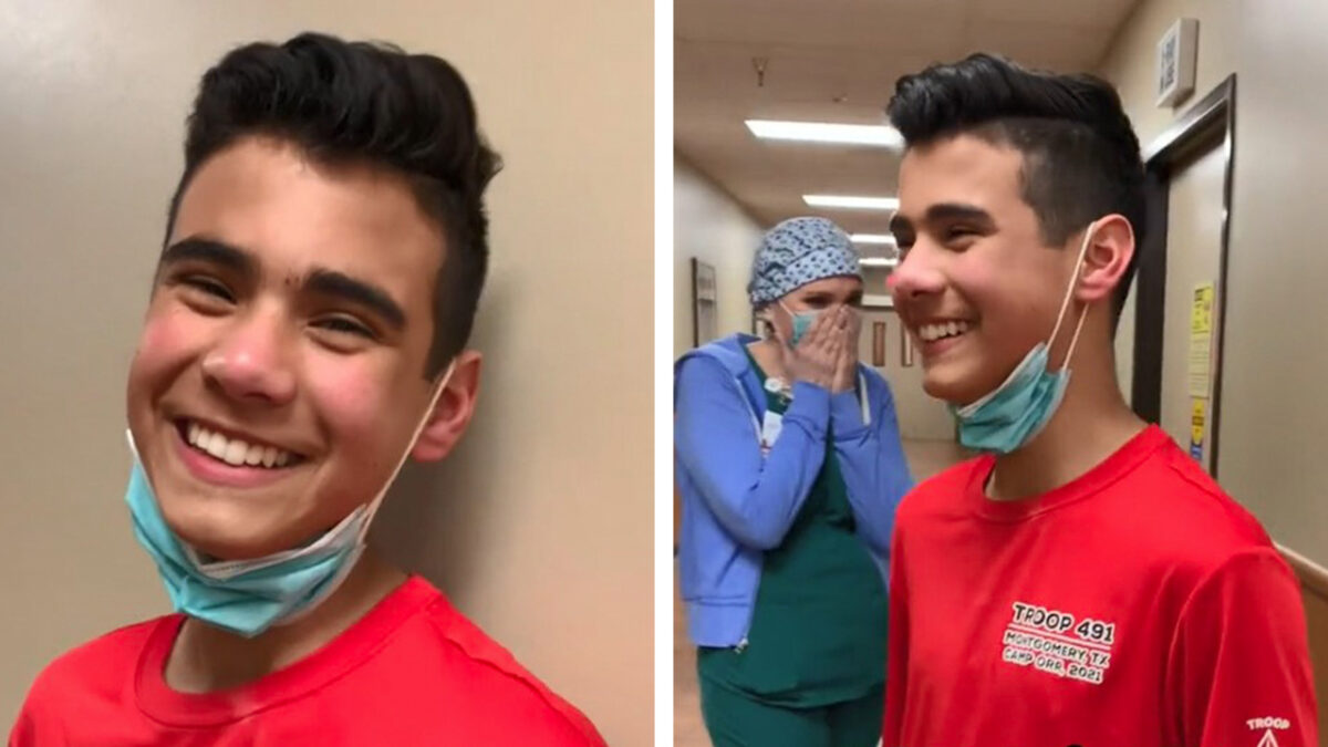 De 13-jarige puber Jonathan Serrano piepte wel even anders nadat hij per ongeluk (hoe dan?) een hondenspeeltje had ingeslikt tijdens het stoeien met zijn moeder. Uiteindelijk hebben ze het speeltje veilig kunnen verwijderen, maar eerst heeft iedereen er hartelijk om kunnen lachen.