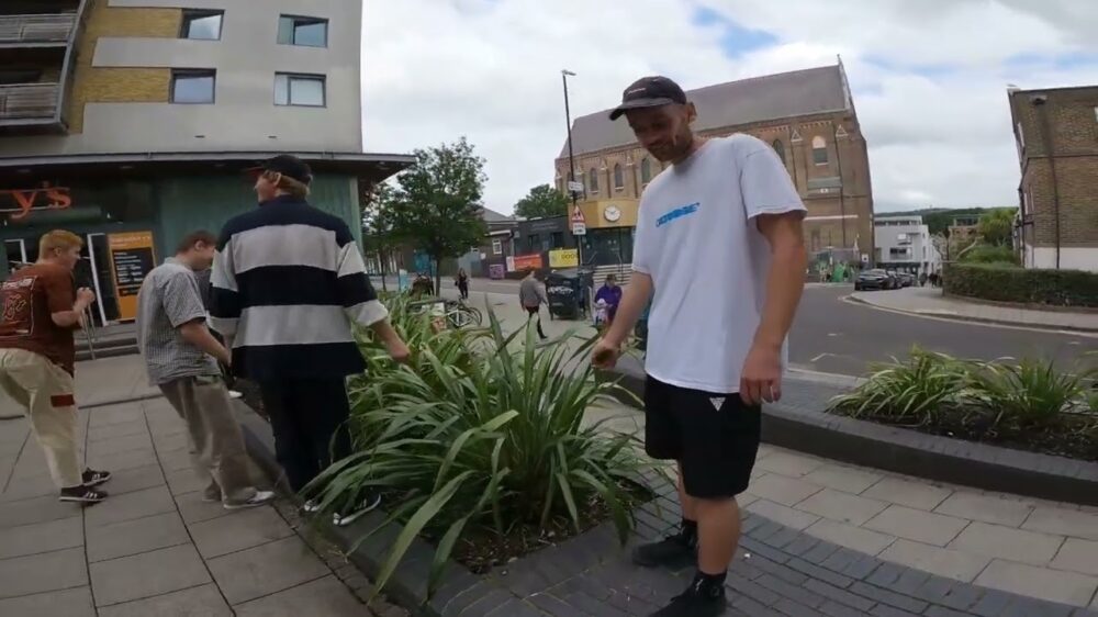 Groepje skaters heeft de grootste lol met een vulgair plantje