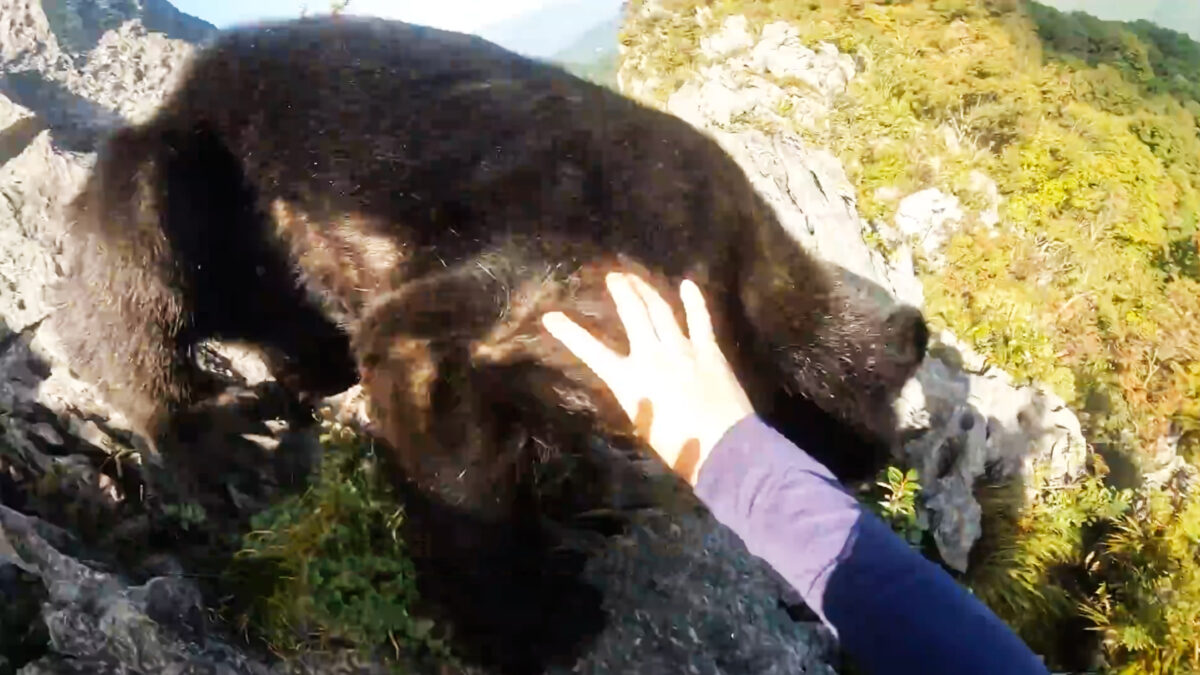 Bergbeklimmer aangevallen door hongerige beer en Dragon Fist hem van zich af