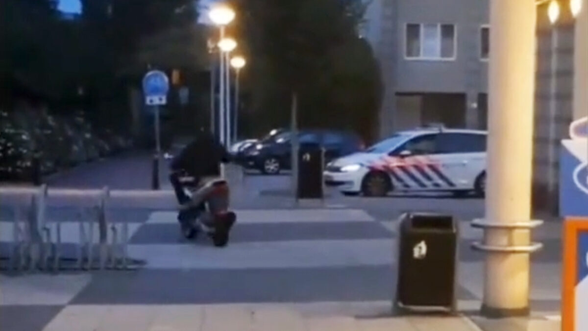 Naar verluidt zijn we hier op het altijd idyllische Muziekplein te Barendrecht waar we getuige zijn van interactie tussen een verdachte jongeman op een scooter en een ogenschijnlijk chagrijnige politieagent. Dat was bijna een ritje richting het ziekenhuis geweest. 👀