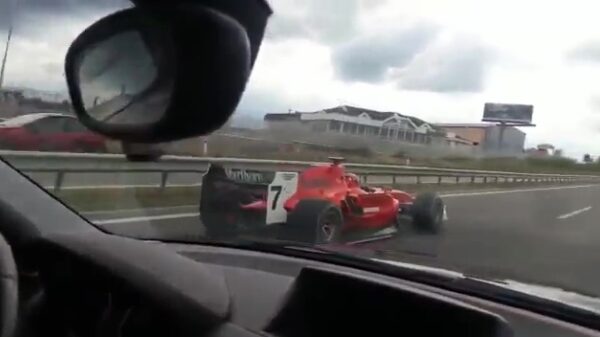 Op de snelweg een Ferrari tegenkomen, dat is ons allemaal wel eens gebeurd, maar dit modelletje kom je minder vaak tegen. Misschien dat Sebastian Vettel even een pak melk moest scoren?