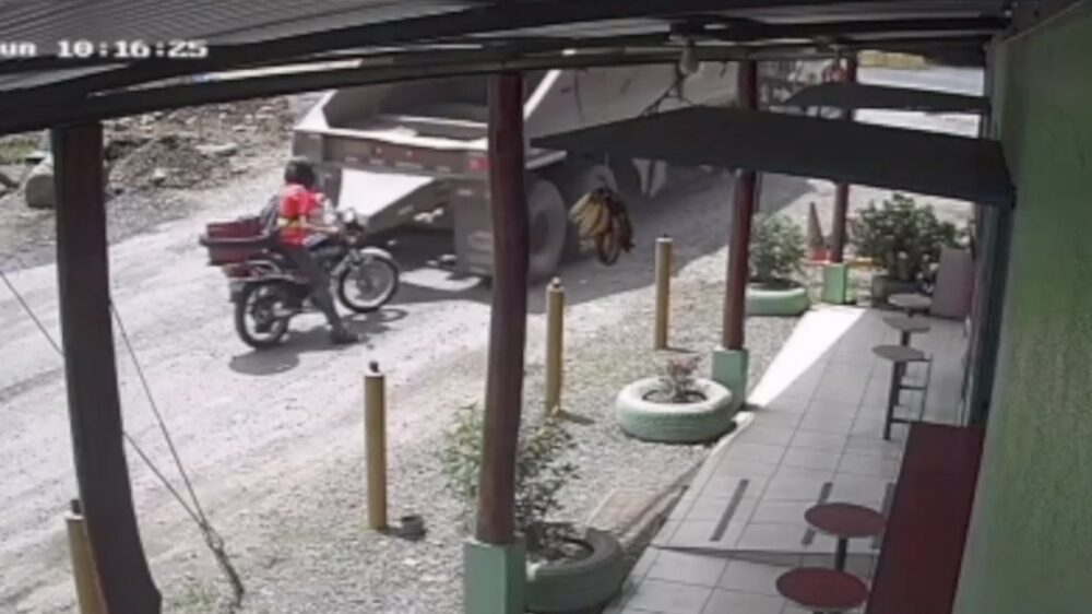 Vrachtwagenchauffeur parkeert zijn bolide bovenop een onvoorziene motor Bizar
