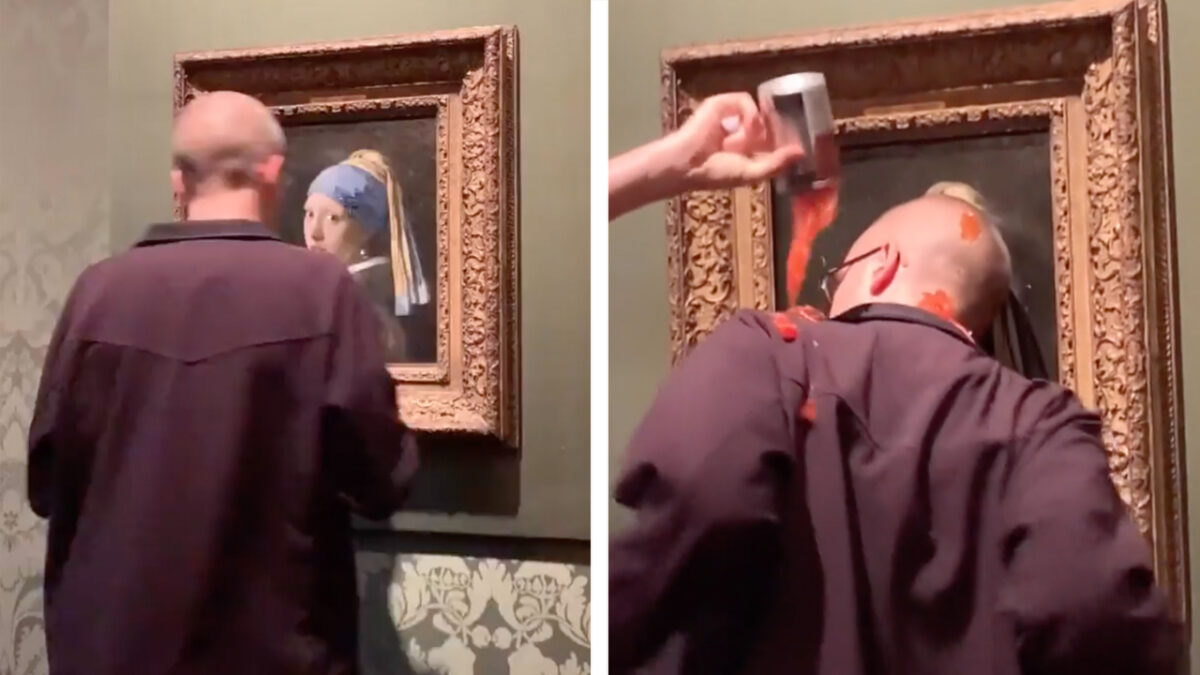 Ah gelukkig, ook wij ontkomen niet aan #activisten die kunstwerken en andere dure dingen besmeuren. Zojuist is het schilderij Meisje met de Parel van Vermeer door de milieuactivisten van Just Stop Oil beklad en heeft een activist geprobeerd zijn hoofd aan het schilderij vast te lijmen. Drie personen zijn aangehouden en het Mauritshuis is gesloten.