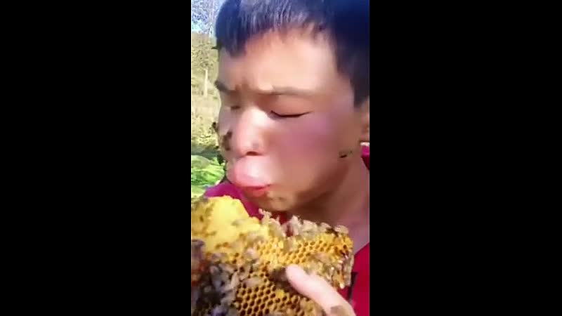 Je bent pas echt een zoetekauw als je jezelf laat steken door een miljoenmiljard bijen. Zouden we hem vertellen dat hij ook gewoon een potje honingbij de plaatselijke supermarkt kan kopen?