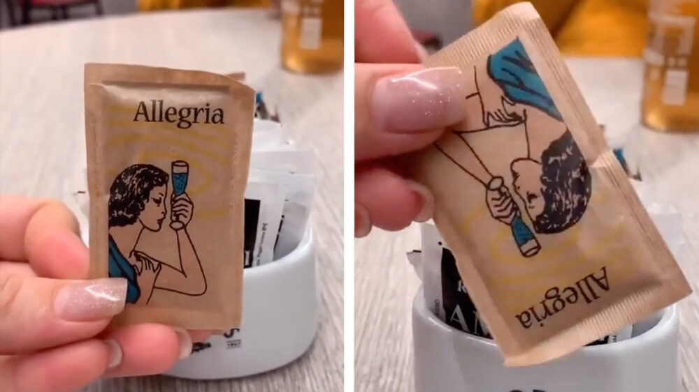 Wie bedenkt nou zoiets op een suikerzakje? Oh wacht...