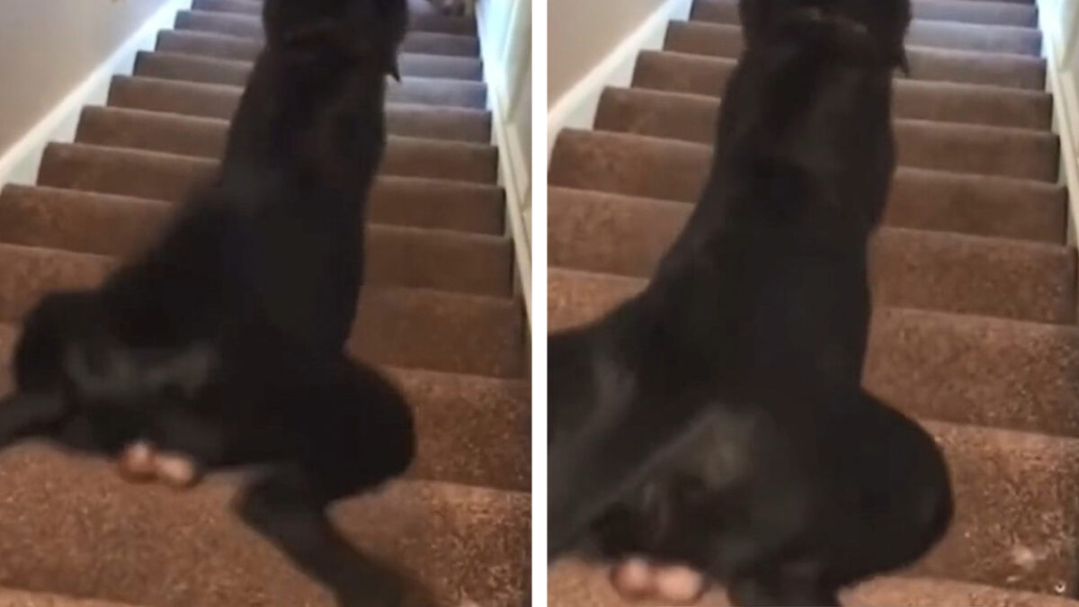 Bonk, bonk! Brutus houdt ervan om de trap te teabaggen Dieren