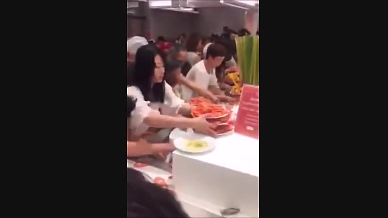 Als een groepje Chinese toeristen bij een buffet aanschuift Fun