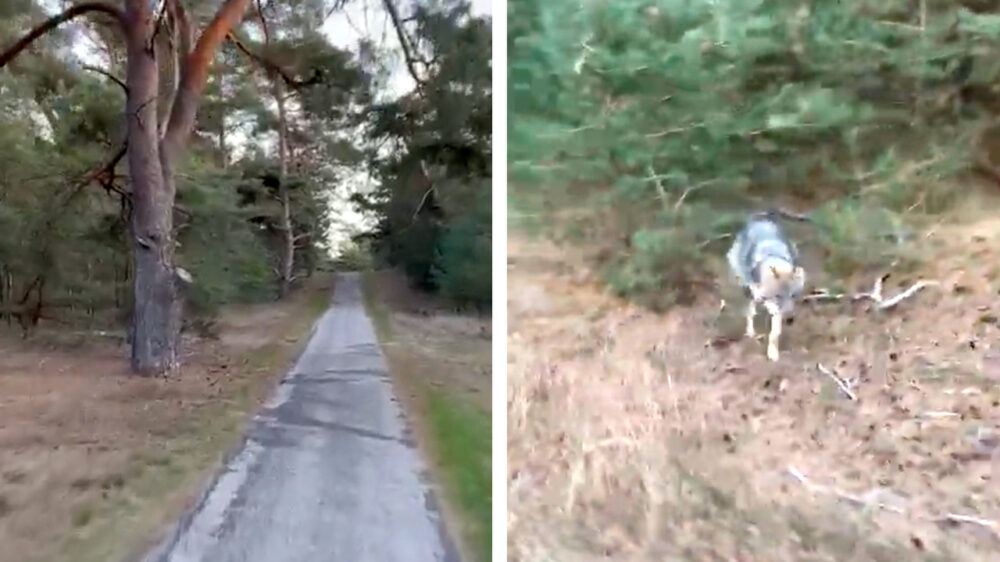 Wielrenner van 0 naar 100 km/u als hij door een wolf wordt aangevallen op de Veluwe