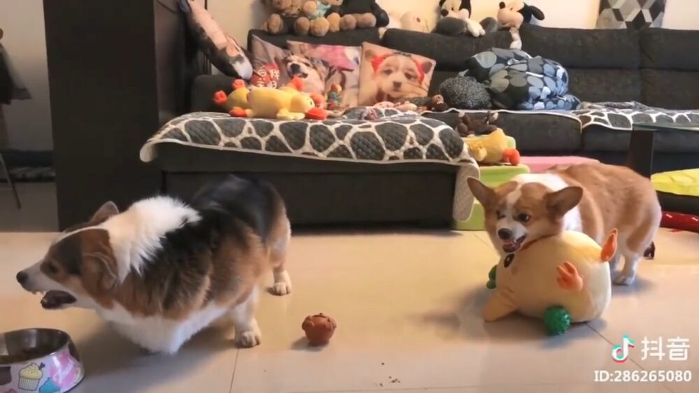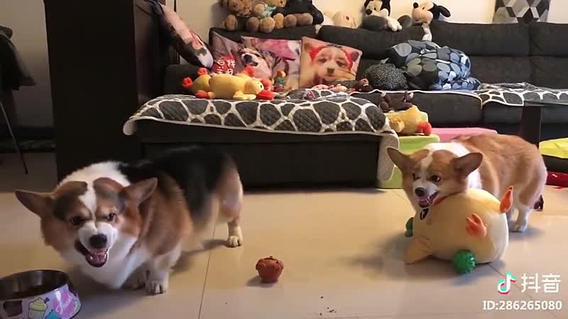 Met dramatische geluidseffecten wordt zelfs een mollig Corgi-gevecht spannend! Fun