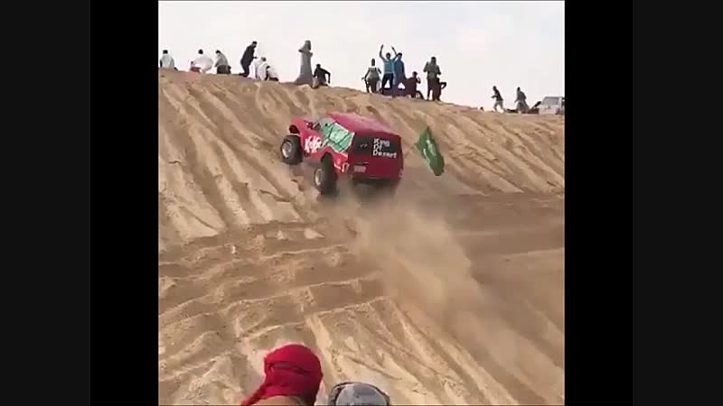 Saoedische chauffeur loopt in de woestijn de klootzak uit te hangen Fun