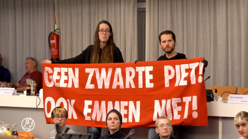 Gisteravond in Emmen: actievoerders tegen Zwarte Piet verstoren raadsvergadering