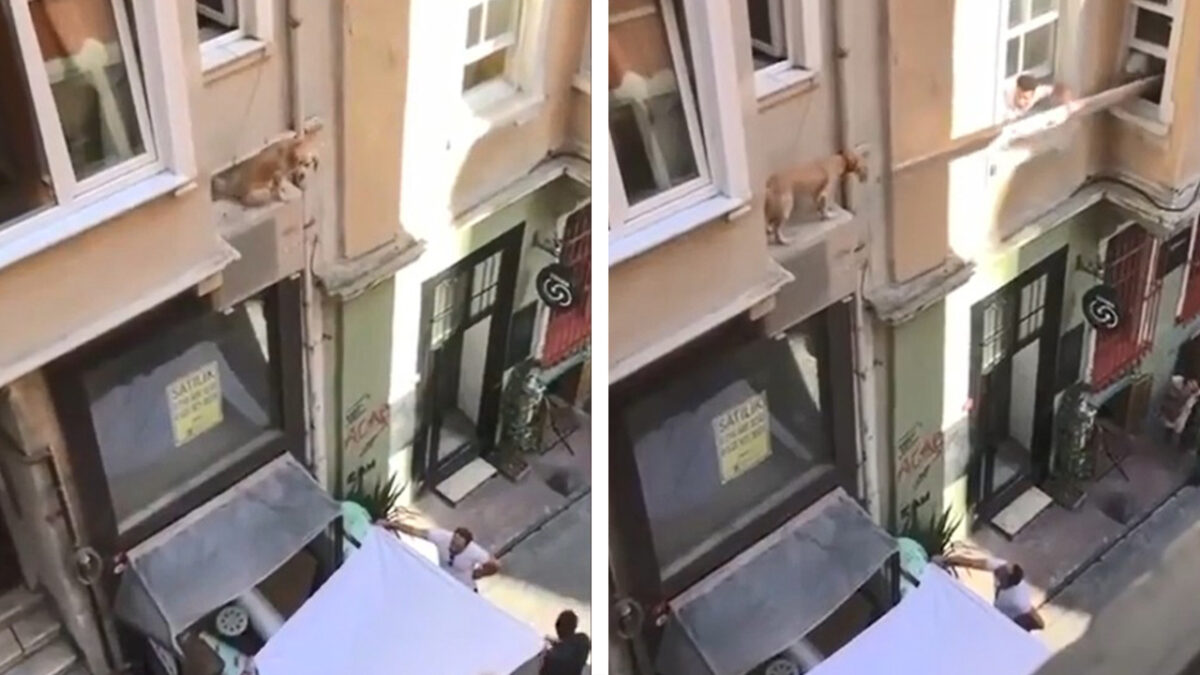 Hond die uit een raam is gevallen wordt gered door groepje behulpzame Turken