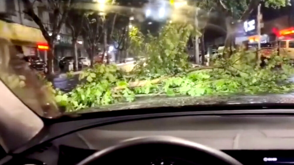 Attente tegenligger verwijdert omgevallen boom voor zijn maatje Fails