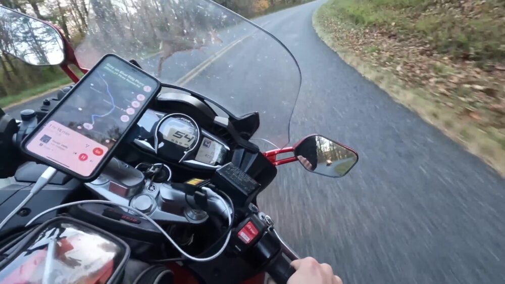 Deze motorrijder wilde even lekker door de herfstachtige bossen in de Amerikaanse staat Virginia cruisen, maar daar dacht dit hert heel anders over. Zal hij nog rondlopen of hangt hij als trofee aan de muur?
