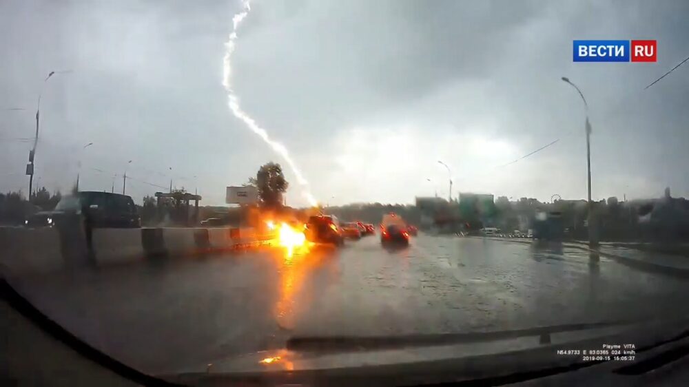 Bliksem slaat twee keer achter elkaar in op Toyota RAV4 en dat zorgt voor mooie beelden Verkeer