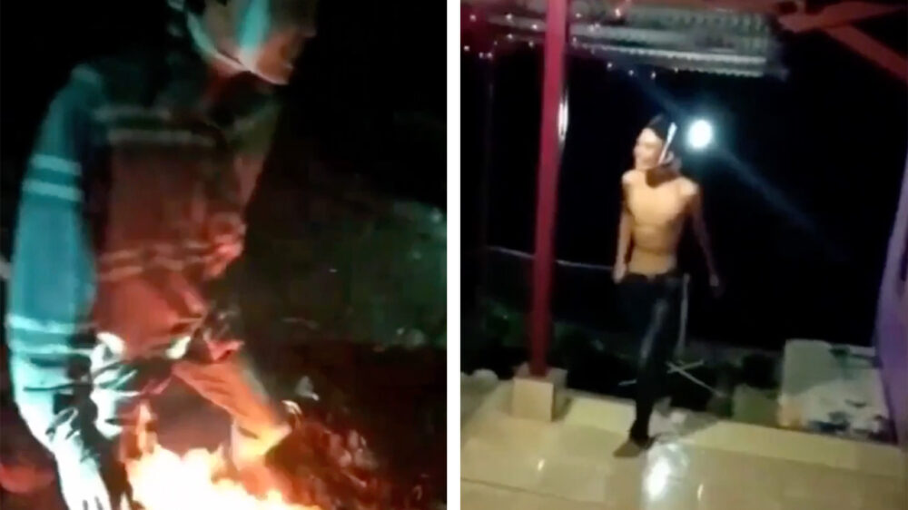Waarom zou je als vriend iemand helpen als je hem ook gewoon kunt filmen en uitlachen? Tjakkaaaaaaa, goed gewerkt vriend!