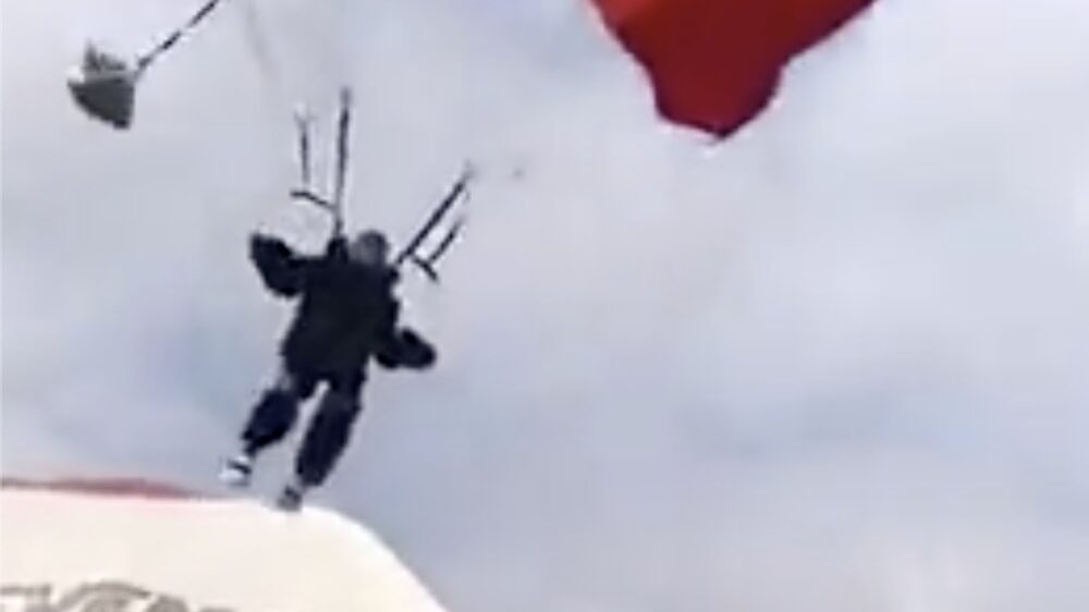 Parachutespringer zonder richtingsgevoel landt midden in het publiek