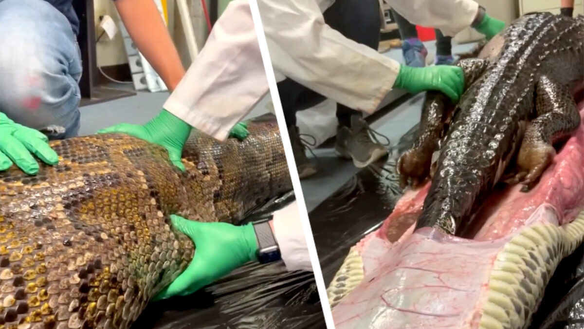 Bizar: een bijna volledig intacte alligator in de buik van een python gevonden