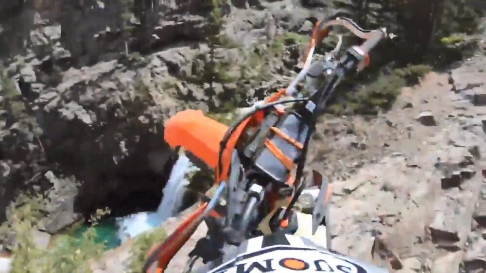 Kerel klettert het ravijn in tijdens hobbelig tochtje op zijn crossmotor Bizar