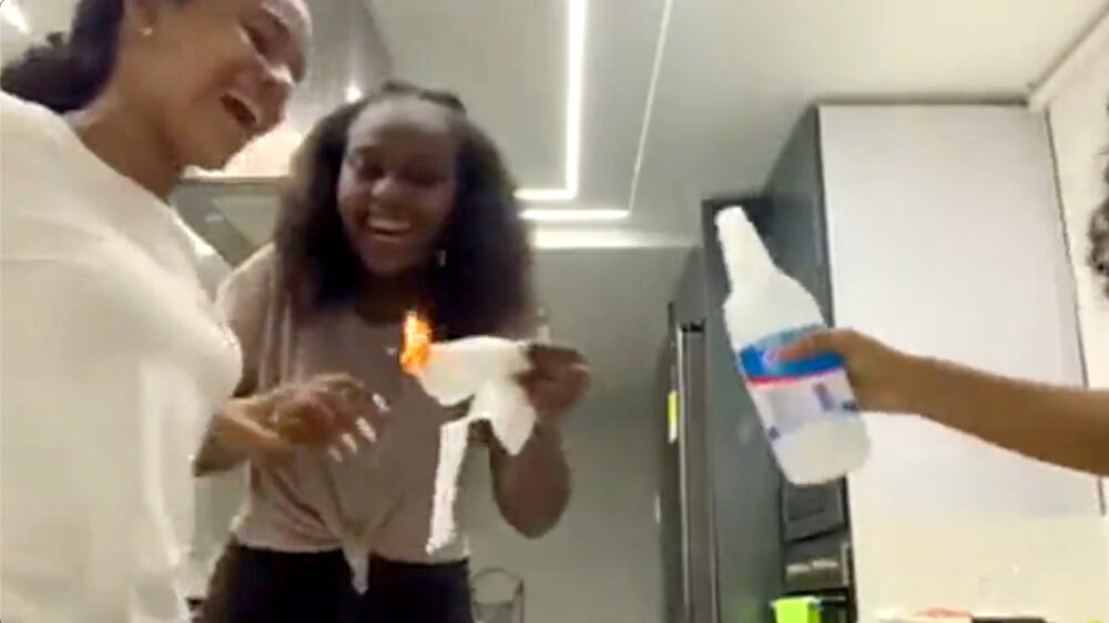 Groepje vrouwen leert een wijze les: alcohol + vuur = brandend haar