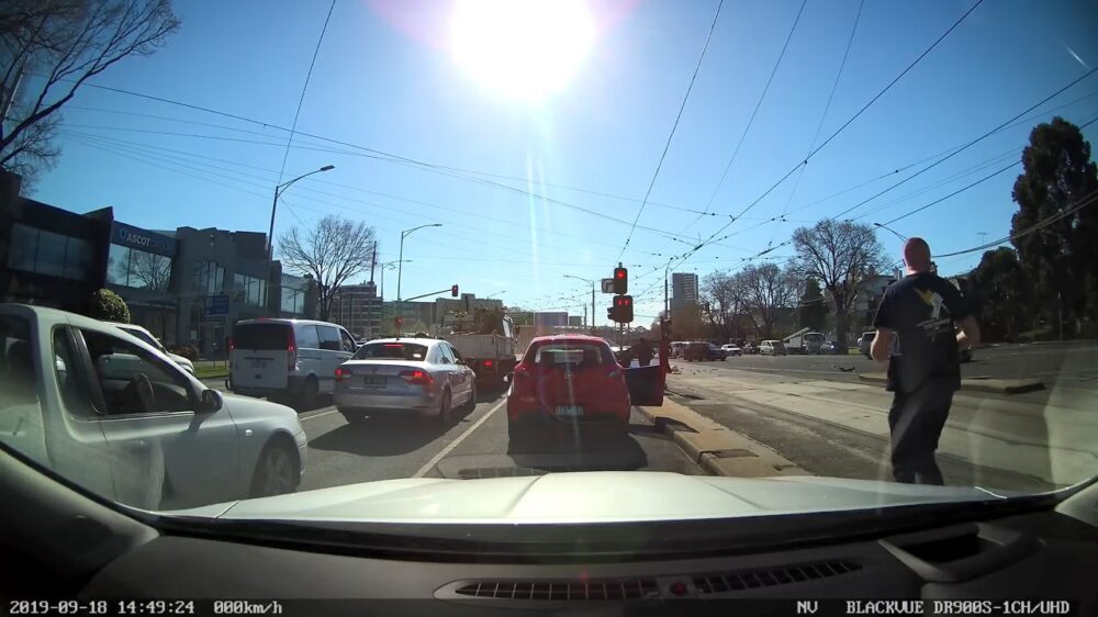 Automobilist rijdt door rood en beukt pickup-truck met zijn hele inboedel ondersteboven