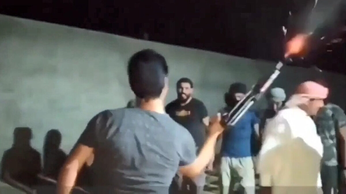 Close calletje als Achmed op een Syrische bruiloft met zijn Kalasjnikov schiet Random