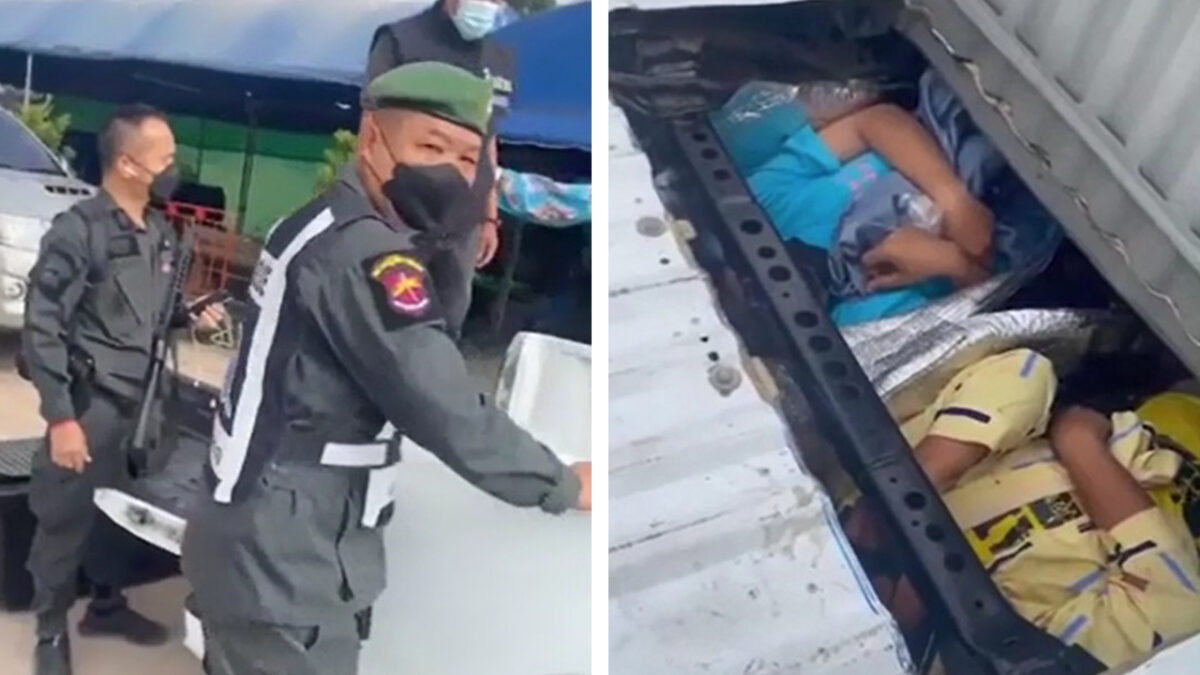 Smokkelaars hebben een aangepaste pick-up laten fabriceren waarmee ze illegale arbeiders Thailand in proberen te smokkelen. Een oplettende agent vertrouwde het zaakje niet en trof een geheime ruimte aan waar twee personen verstopt zaten.