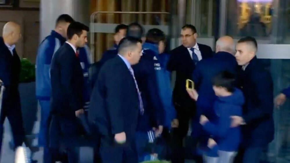Vlak voordat het Argentijnse team hun hotel binnen ging probeerde een jonge fan een handtekening van Lionel Messi te scoren. Deze ijverige bewaker duldt natuurlijk geen opdringerige fans en sleurt hem linea recta terug. Gelukkig vond good guy Messi dat een beetje overdreven en riep hem meteen terug.
