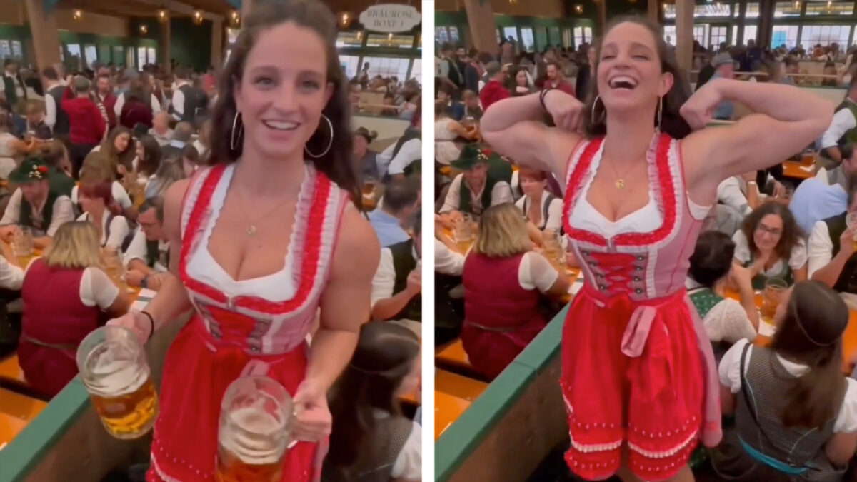 Nicht föcken met het bier van deze serveerster op het Oktoberfest