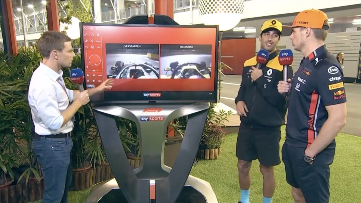 Ex-teamgenoten Verstappen en Ricciardo ontmoeten elkaar weer bij Sky Sports
