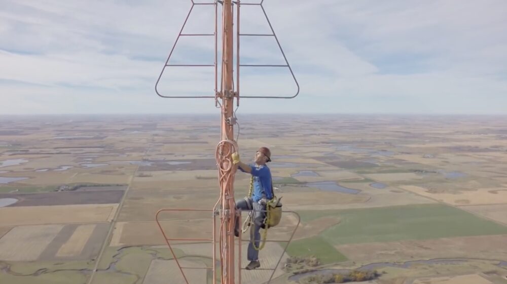 Een ontspannen stukje klimmen in de 600 meter hoge tv-toren Bizar