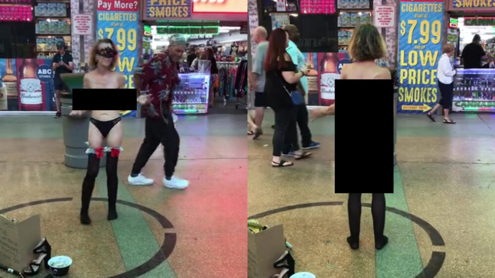We kennen allemaal de sketch van Hans Teeuwen wel, en deze dame is de vleesgeworden uitspraak "Lalala, geld". Kleren uit, beetje heen en weer zwaaien en klaar.