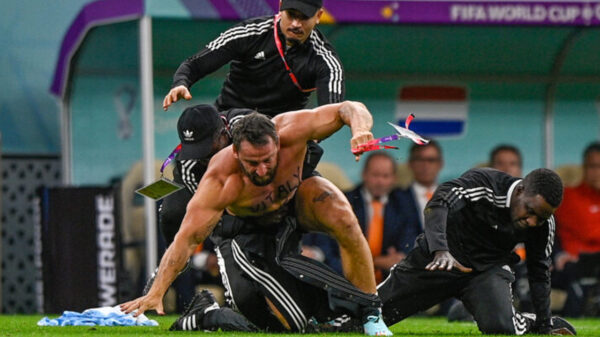 De kwartfinale tussen Nederland en Argentinië werd kort onderbroken doordat een idioot het nodig vond het veld op te stormen na een opstootje tussen Emiliano Martínez en Luuk de Jong. Er waren 6 beveiligers nodig om hem weg te krijgen.