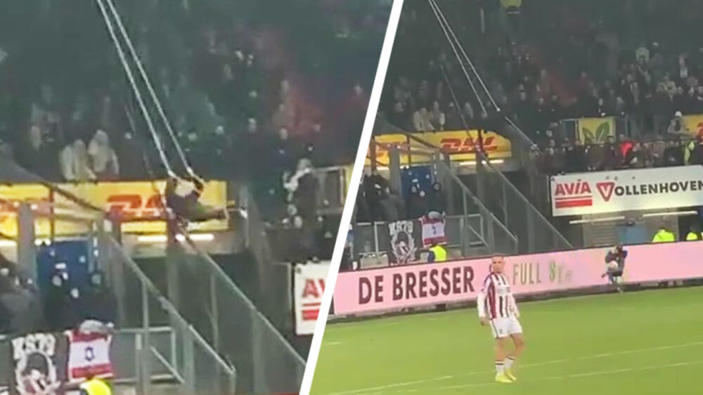 Gisteren vond de derby Willem II - NAC plaats, die overigens eindigde in 1-2. Zonder behulp van fans, want na eerdere ongeregeldheden mocht de ploeg uit Breda geen fans meenemen naar Tilburg. Zo te zien was het ook niet echt een héél spannende wedstrijd, want een van de Willem II-supporters besloot tijdens het foebele een lekker potje te gaan schommelen. Tsjah, je moet wat als je je verveelt hè...