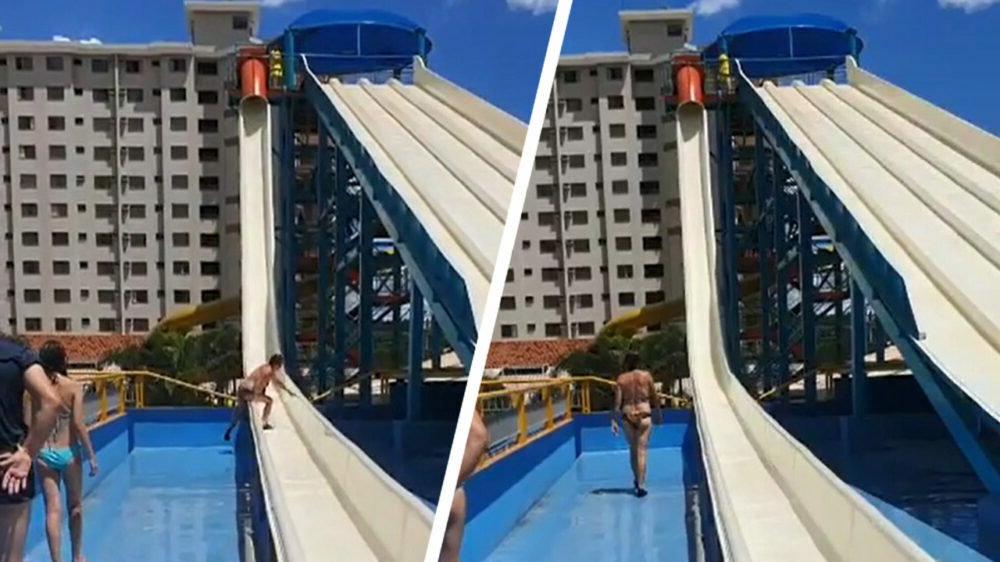 Het was eventjes wennen voor oma toen ze mee mocht naar een waterpark in Brazilië, want blijkbaar heeft ze nog nooit gezien dat je een trap nodig hebt om op een waterglijbaan te komen. Of is het gewoon weer een typisch voorbeeld van een bejaarde die weer eens voordringt?